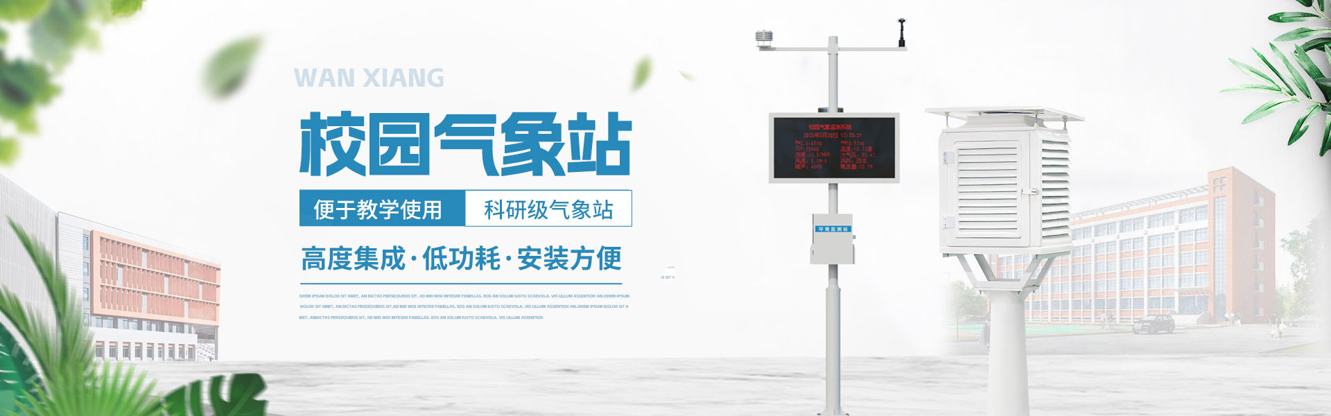 山東萬象環(huán)境科技有限公司官網(wǎng)主要產(chǎn)品有防爆氣象站,校園氣象站,農(nóng)業(yè)氣象站,負(fù)氧離子監(jiān)測(cè)站,超聲波氣象站,歡迎咨詢13276361891!